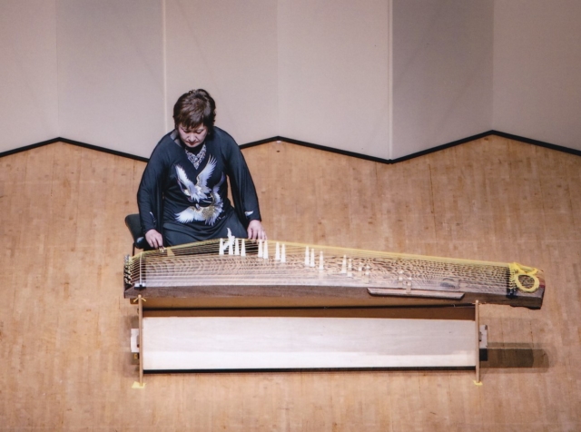 十三絃箏の独奏で始まりましたが、いくつもの楽器で演奏されているような錯覚に陥るほど、数多くの異なる音が響いてきました。