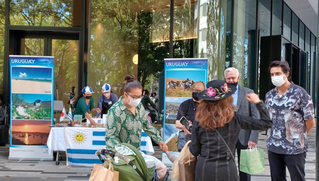 10月23日、秋晴れの爽やかな日、東京ポートシティー竹芝にて、チャリティーバザーが催されました。今年はラテンアメリカの大国、ブラジル、アルゼンチン、チリの出店がありませんでしたが、メキシコ、ペルー、そしてウルグアイなど14か国が参加し、家族や友達同士など大勢の人で賑わいました。その国を代表する食べ物や飲み物、民芸品が販売され、ウルグアイからはワインがなかったのが残念でしたが、エンパナーダやアルファホレスなどが売られ、完売したそうです。尚、日ウ協会からは、佐久間会員、オラシオ会員他5名が参加しました。