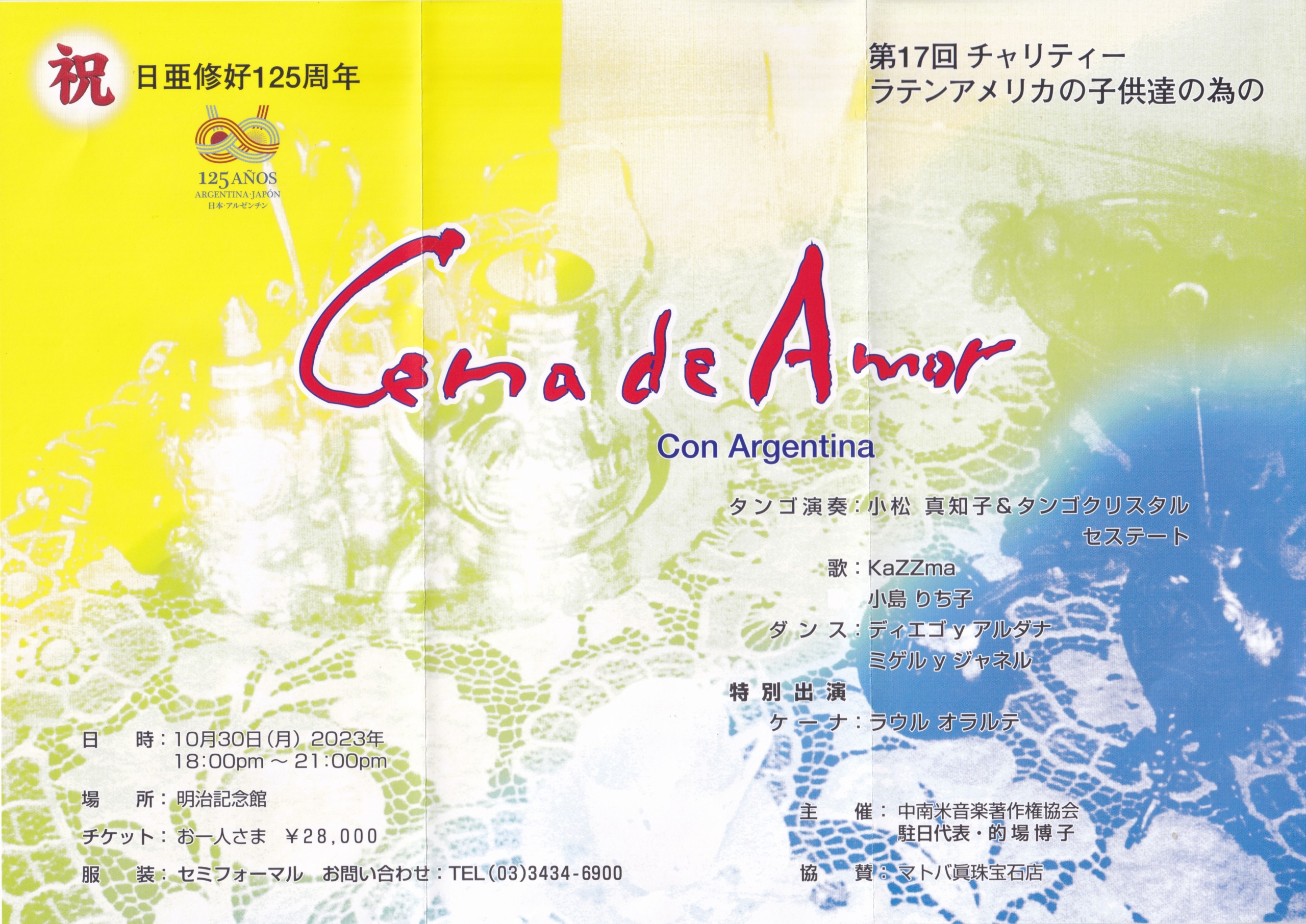 今年は日本・アルゼンチン修好125周年、華やかなタンゴのショー、ダンスタイムを用意しています。是非ご参加ください。
