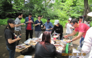 6月22日の土曜日、駒場野公園広場にて日本ウルグアイ協会主催のバーベキュー交流会が開催されました。利用日は抽選のため日を選べず、梅雨の時期になってしまい、注文してしまったウルグアイビーフはどうしよう?と大変心配しました。ところが、前日が大雨で梅雨入りが発表されたにもかかわらず、当日は晴れ上がり、雨で洗われた緑が鮮やかな木々に囲まれた中で開催することができました。