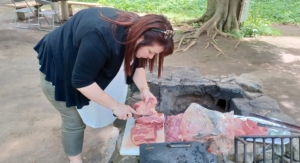 ウルグアイビーフは田中径子元大使が手配してくださり、参加者の皆さんが協力してサラダ、ソースなどを作って持ってきてくれました。重い肉や炭などを車で運んでくれたり、皆さんの協力のお陰で楽しいひと時を過ごすことができました。