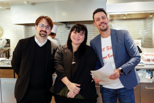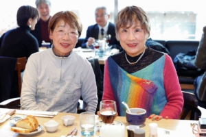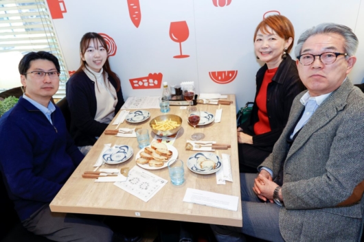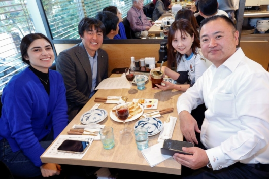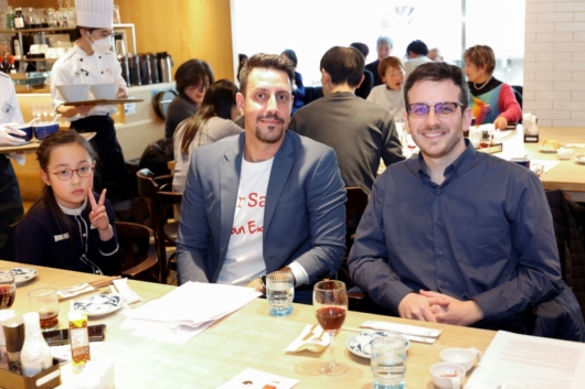 * 慶子会員を挟んで日本で働いているガブリエル会員とオラシオ会員(スペイン語・日本語翻訳担当)