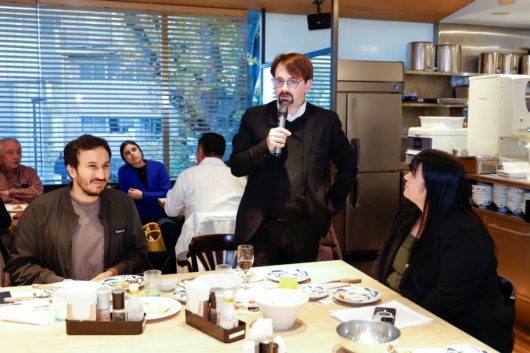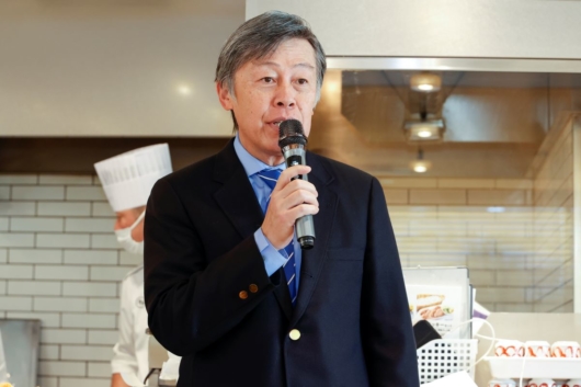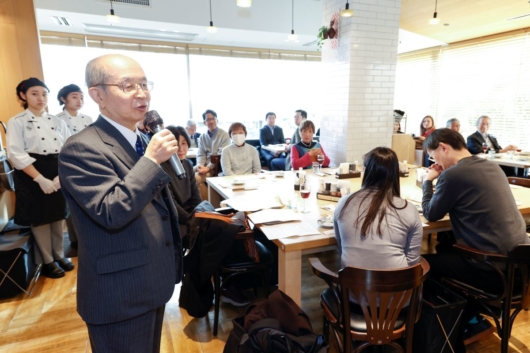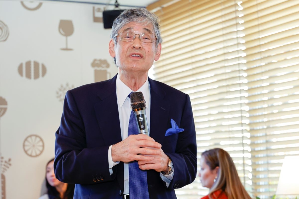 「こんにちは。まず最初に、このイベントを企画してくださった日本ウルグアイ協会、竹元会長、藤井先生に感謝いたします。また、2年連続でこの企画にご協力いただき、素晴らしいウルグアイ料理を準備して下さったねぎしの皆さんにも感謝いたします。大使館にとって、このような催しは重要な活動の一部です。」