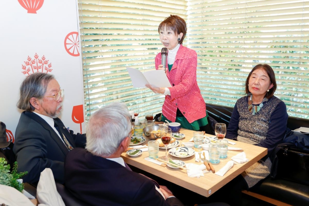 最初に、竹元会長の駐ウルグアイ大使時代に参事官として勤務されていた牧内博幸様から「当時から小さな国だがキラっと光る国を目指してプラン・セイバルを通じて小中学生へのデジタル教育を強力に進めていたこと、国際機関などでは多くのウルグアイ職員が嬉々として国際貢献をしている姿を見てきたこと」などの思い出話を聞かせていただき、