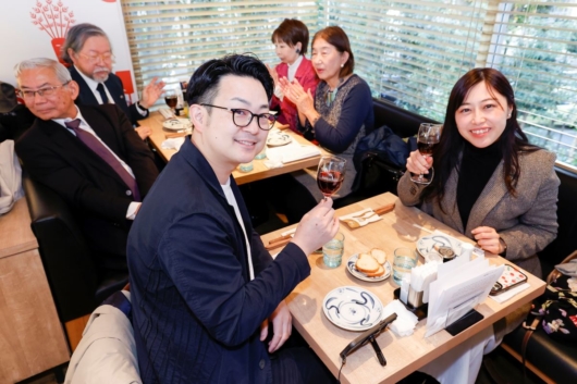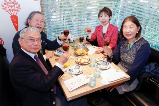 ウルグアイ大使館・日本ウルグアイ協会共催で、昨年に引き続き、「ねぎし」お茶の水店にて「ウルグアイビーフとワインを楽しむ会」が催されました。参加者はウルグアイ大使館関係20名、日本ウルグアイ協会側は、竹元会長を始め、会員、その家族、友人など40名(当日欠席者3名)が集いました。今回は、ウルグアイビーフとワインを味わいながら、様々な分野の方にウルグアイの思い出を語っていただきました。